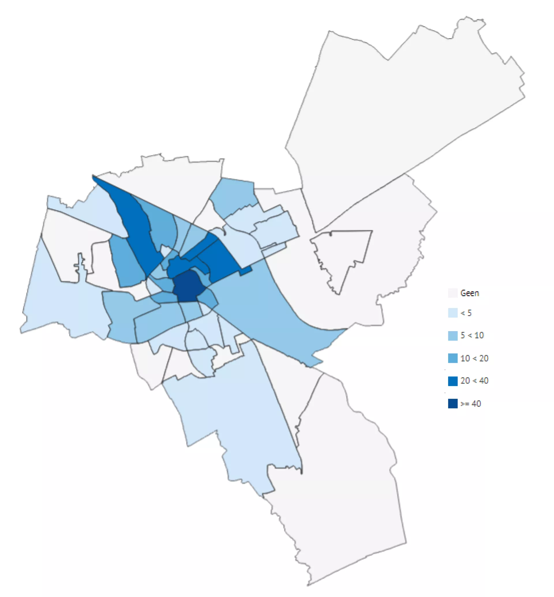 Aan de jongeren die niet meer bij hun ouders/verzorgers wonen, is gevraagd naar hun postcode, zie figuur 3.7. De meeste jongeren wonen in het centrum, gevolgd door de Oosterparkwijk, Paddepoel en Selwerd. Ook in Vinkhuizen en de Korrewegwijk wonen relatief veel respondenten.